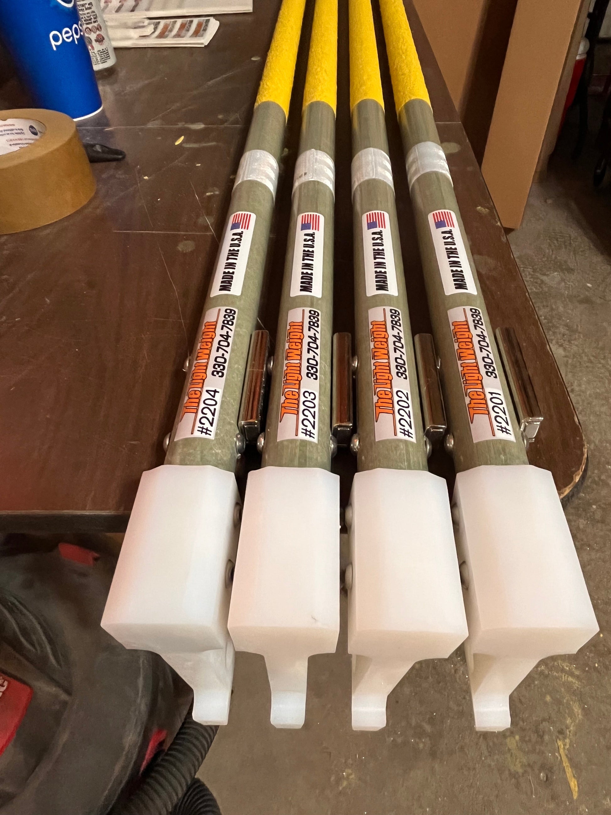 Proven durable 1-1/4"OD X 1/8" composite lightweight brake stick uses a round shaft design and an ultra high molecular weight (UHMW) polyethylene head that is non-conductive. This Ultralight Brake Stick has no moving parts to break, and the magnet has a pull force rating of 84.4 lbs. The magnet and UHMW head are replaceable. MADE IN THE USA.